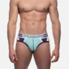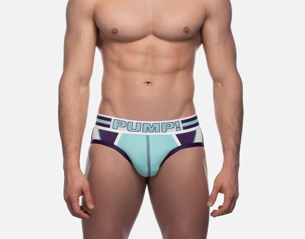 ACTIVATE Briefs really highlight a combination of use in fabrics. its multi panel body is comprised of various colors in both cotton and mesh along with contrasted piping and stitching on angles that accentuate the body. The cotton backside and pouch deliver comfort and breathability. Topped by the PUMP! signature waistband, this brief activates everyone.