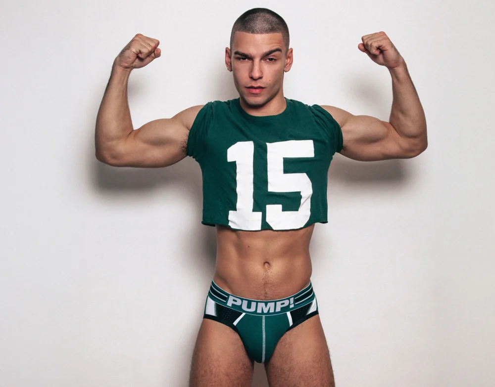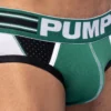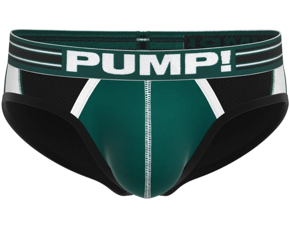 BOOST Briefs really highlight a combination of use in fabrics. its multi panel body is comprised of various colors in both cotton and mesh along with contrasted piping and stitching on angles that accentuate the body. The mesh backside delivers comfort and breathability.  Topped by the PUMP! signature waistband, this brief is a confidence booster.