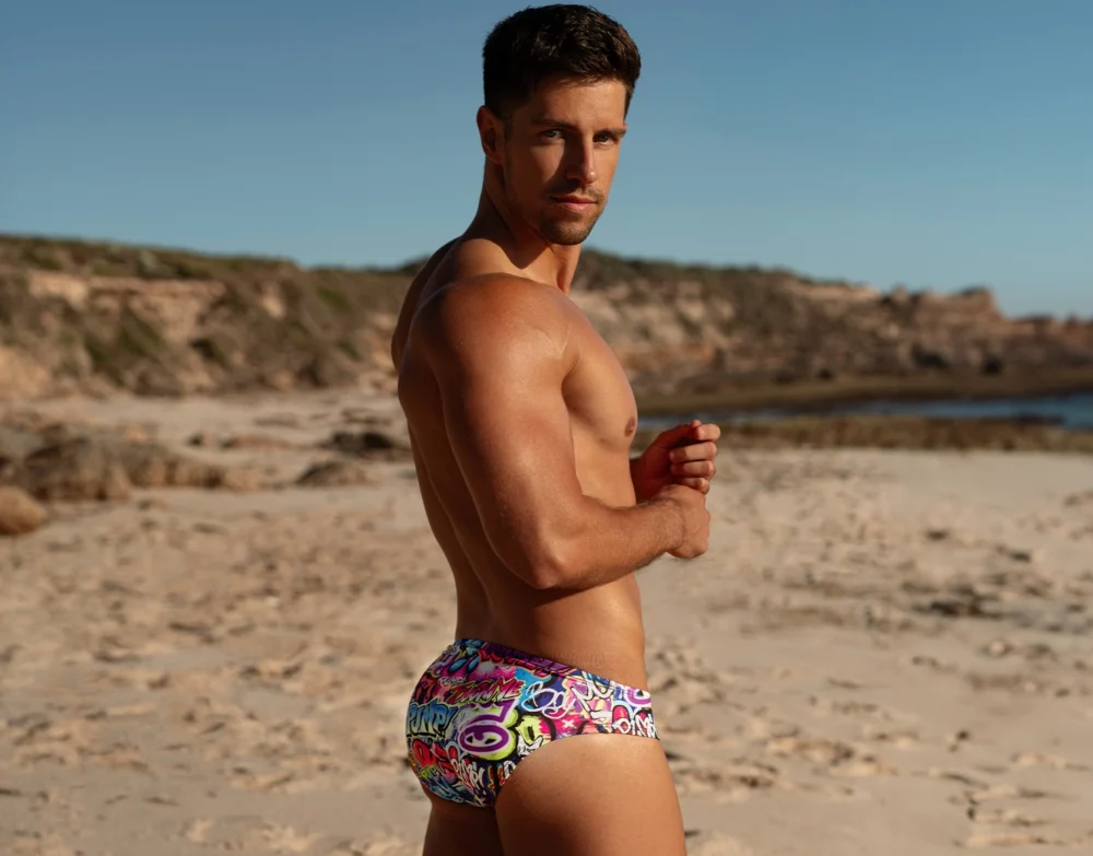 Make waves with the Drip Water Cheeky, featuring a bold graffiti-inspired print for urban energy in the water. Crafted from ultra-soft microfiber fabric, it delivers a secure, body-hugging fit with a low-rise front and a revealing rear cut. Offering UPF 50+ protection, moisture resistance, and sustainable materials made from 12 recycled PET bottles, this standout men’s swimwear piece combines street art style with premium comfort.