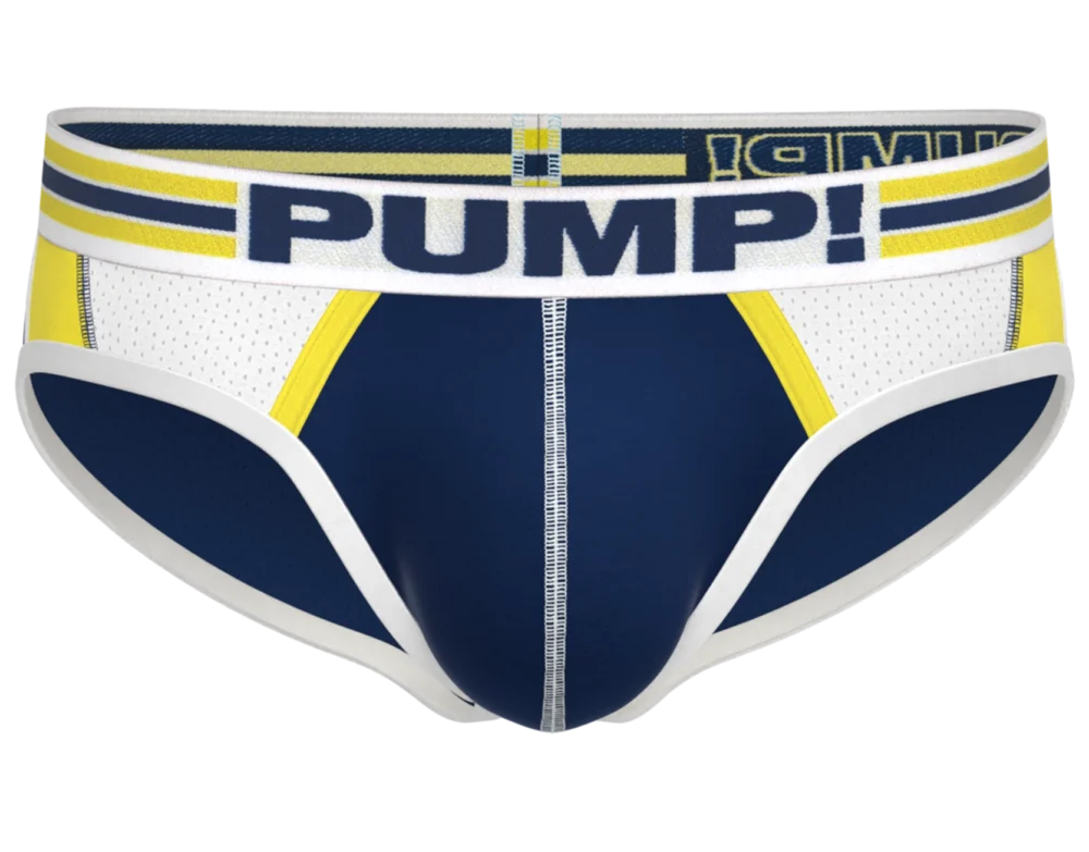 RECHARGE Briefs really highlight a combination of use in fabrics. its multi panel body is comprised of various colors in both cotton and mesh along with contrasted piping and stitching on angles that accentuate the body. The mesh backside and pouch deliver comfort and breathability. Topped by the PUMP! signature waistband, this brief is the recharge you needed.
