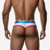 - Brief thong silhouette, offering full front coverage with a revealing back for a confident look.
