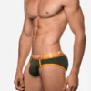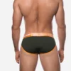 • Military green micro-mesh cup with contrast orange stitching.