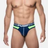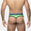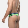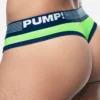 Let your revealing side Surge with this thong. The brief-style silhouette and low-rise fit offer a sleek and eye-catching look while the navy-blue mesh cup, lined with soft cotton, ensures fresh support. Add a touch of color and uniqueness to your wardrobe with the neon green mesh yoke and navy-blue microfiber piping.