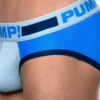 Blue is you! Masculinity in form design and color is the True Blue Brief. The tri tones of deep navy soft baby blue and pure white paint a canvas all over your goodies. The Classic low cut brief design that you have come to know and love from PUMP! accentuates not just those colors but all that hides underneath as well.