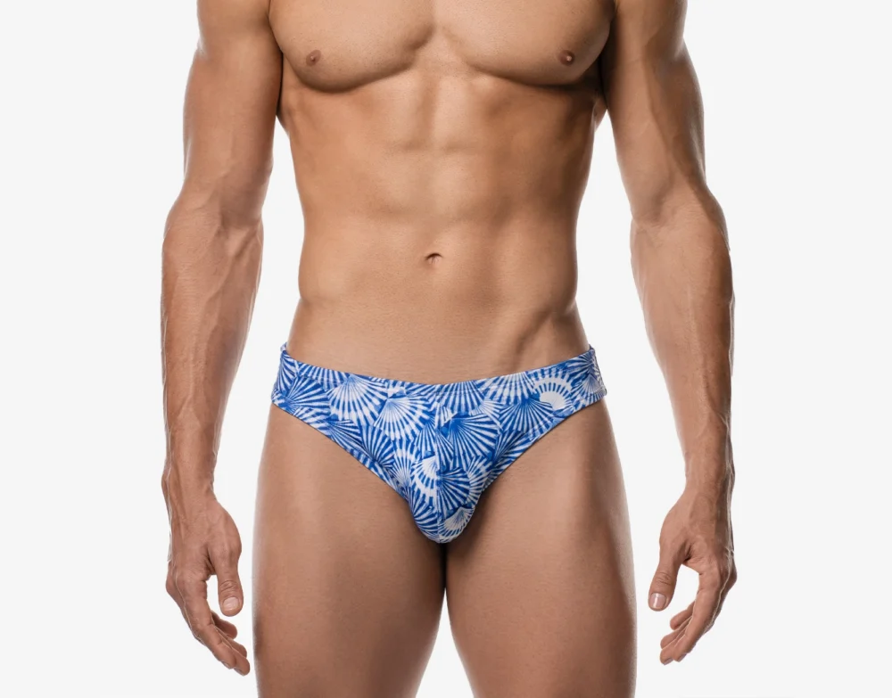 Inspired by coastal elegance, the Shells Water Cheeky features a serene, ocean-inspired shell print perfect for your next escape. Made from ultra-soft microfiber fabric, it offers a breathable, lightweight feel with a flattering low-rise front and cheeky rear cut. With UPF 50+ sun protection, moisture-wicking durability, and fabric crafted from 12 recycled PET bottles, this sustainable men’s swimwear piece delivers comfort and timeless seaside style.